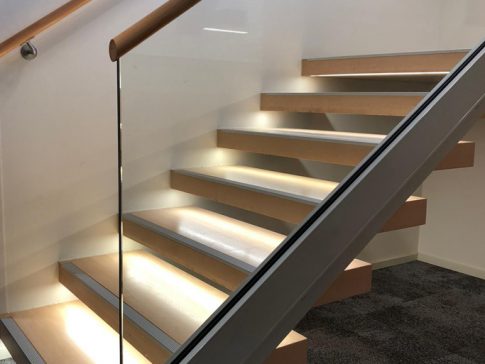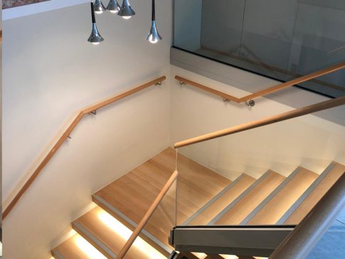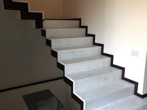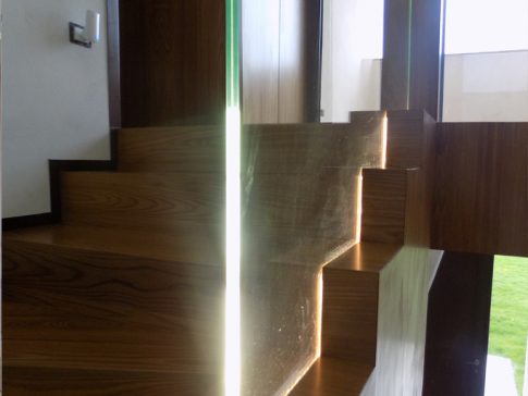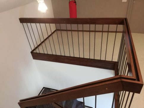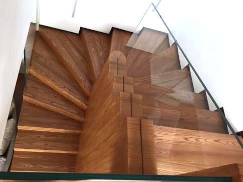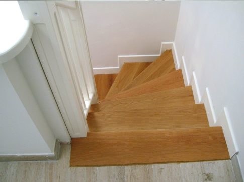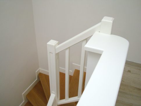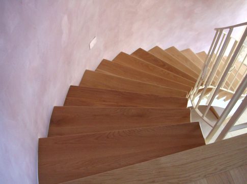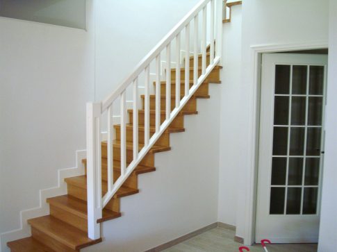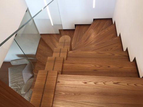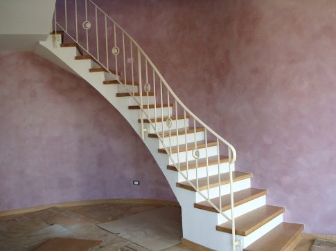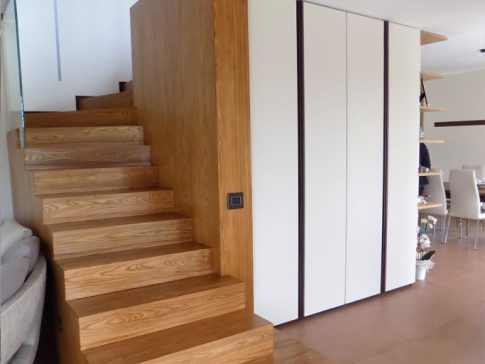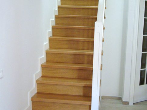 Interventi realizzati: scala in rovere con ringhiera e zoccolino laccata