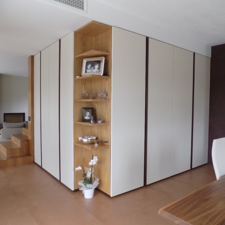Il lavoro è stato realizzato con l’abilità di veri artigiani del legno. Siamo passati dal progetto ad una realizzazione curata nei dettagli e fedele all’idea originale filtrata dalla loro esperienza. Alcuni particolari costruttivi sono stati migliorati in corso d’opera grazie alla disponibilità al positivo confronto tra il sottoscritto e gli artigiani esecutori.